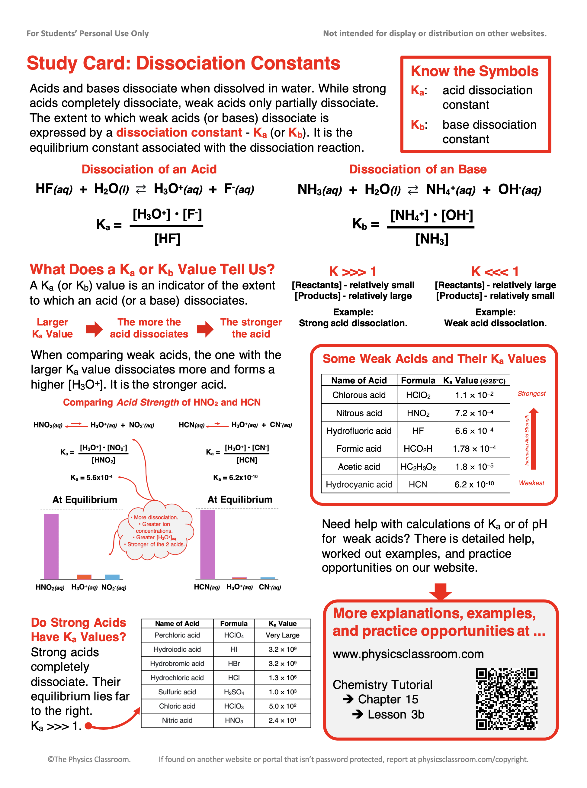 - Download our Study Card on Dissociation Constants. Save it to a safe location and use it as a review tool.