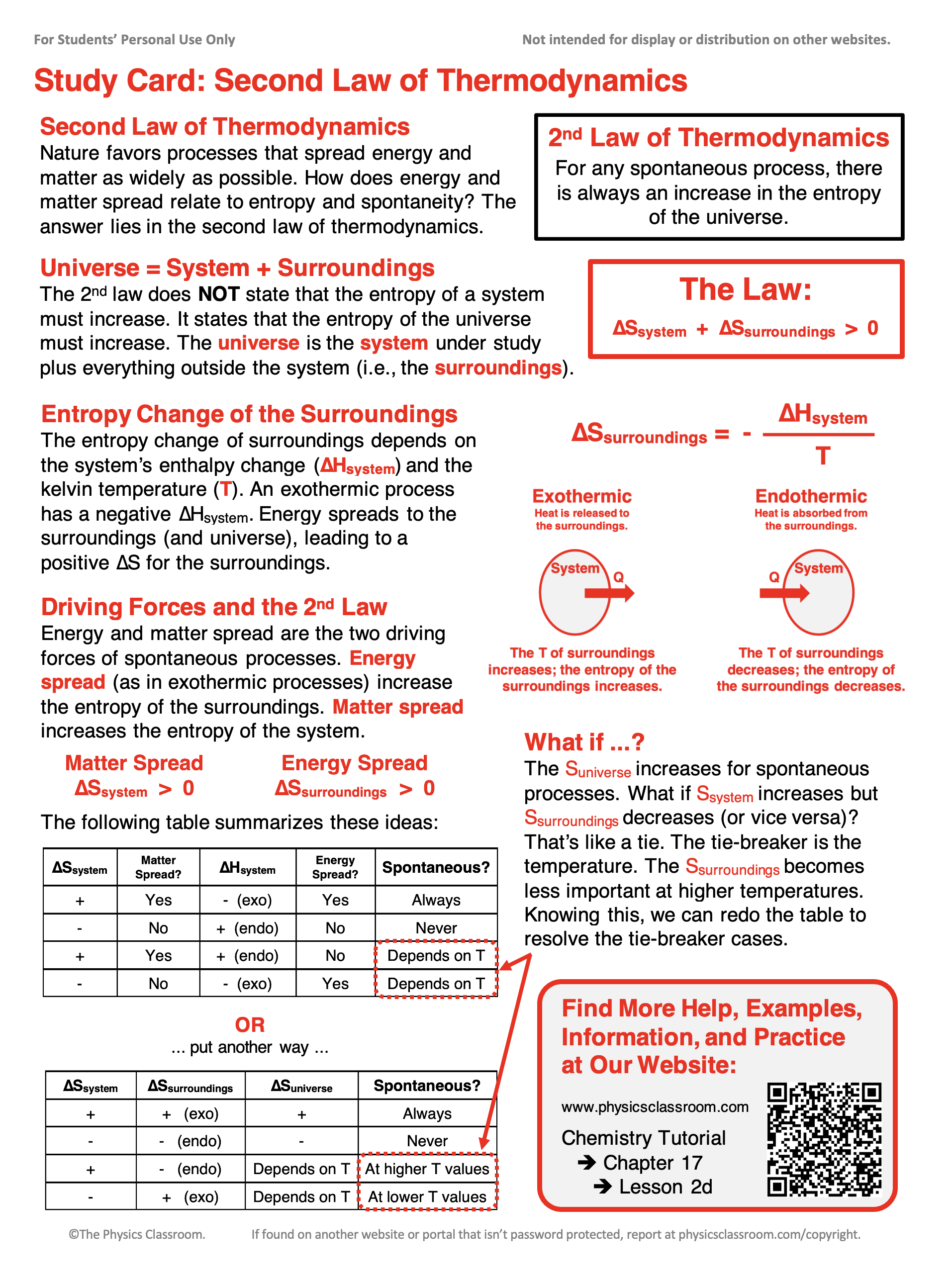- Download our Study Card on Second Law of Thermodynamics. Save it to a safe location and use it as a review tool.