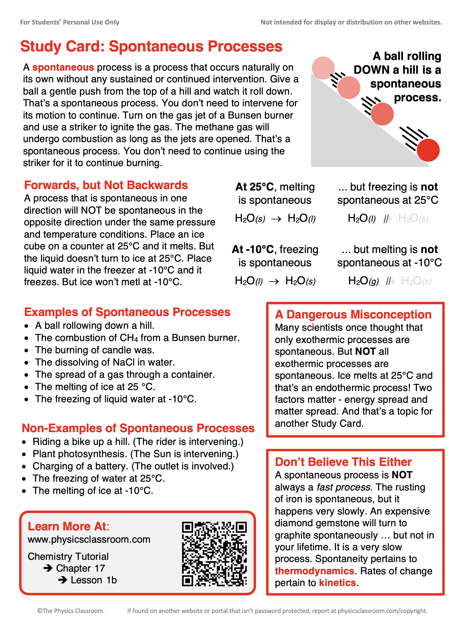 - Download our Study Card on Spontaneous Processes. Save it to a safe location and use it as a review tool.
