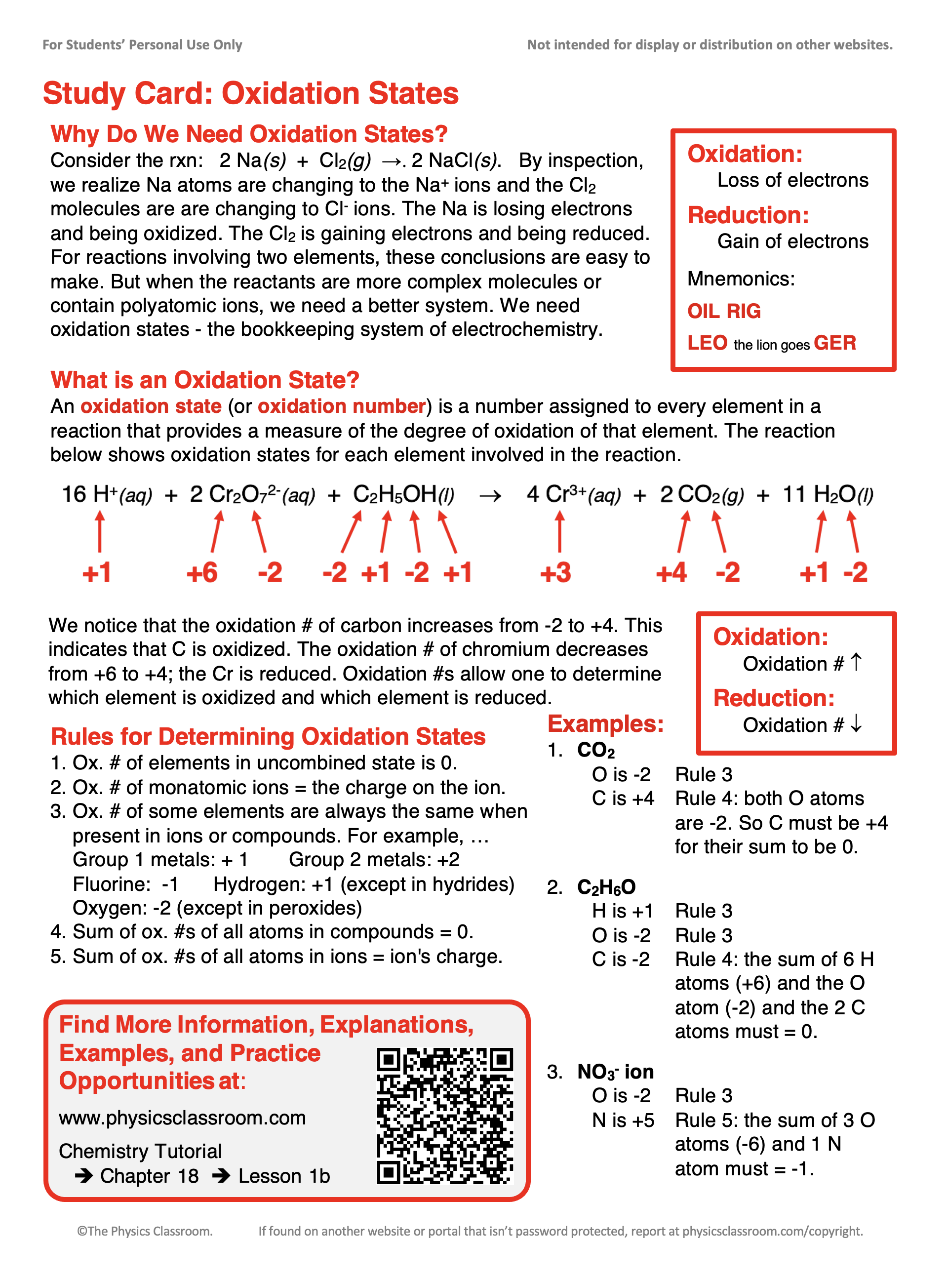 - Download our Study Card on Oxidation States. Save it to a safe location and use it as a review tool.