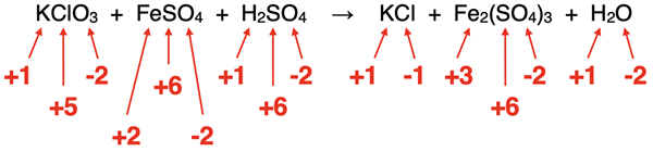 KClO3 + FeSO4 + H2SO4 → KCl + Fe2(SO4)3 + H2O