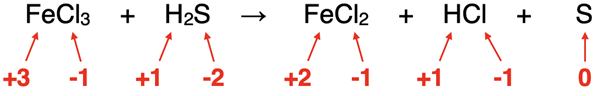 FeCl3 + H2S → FeCl2 + HCl + S