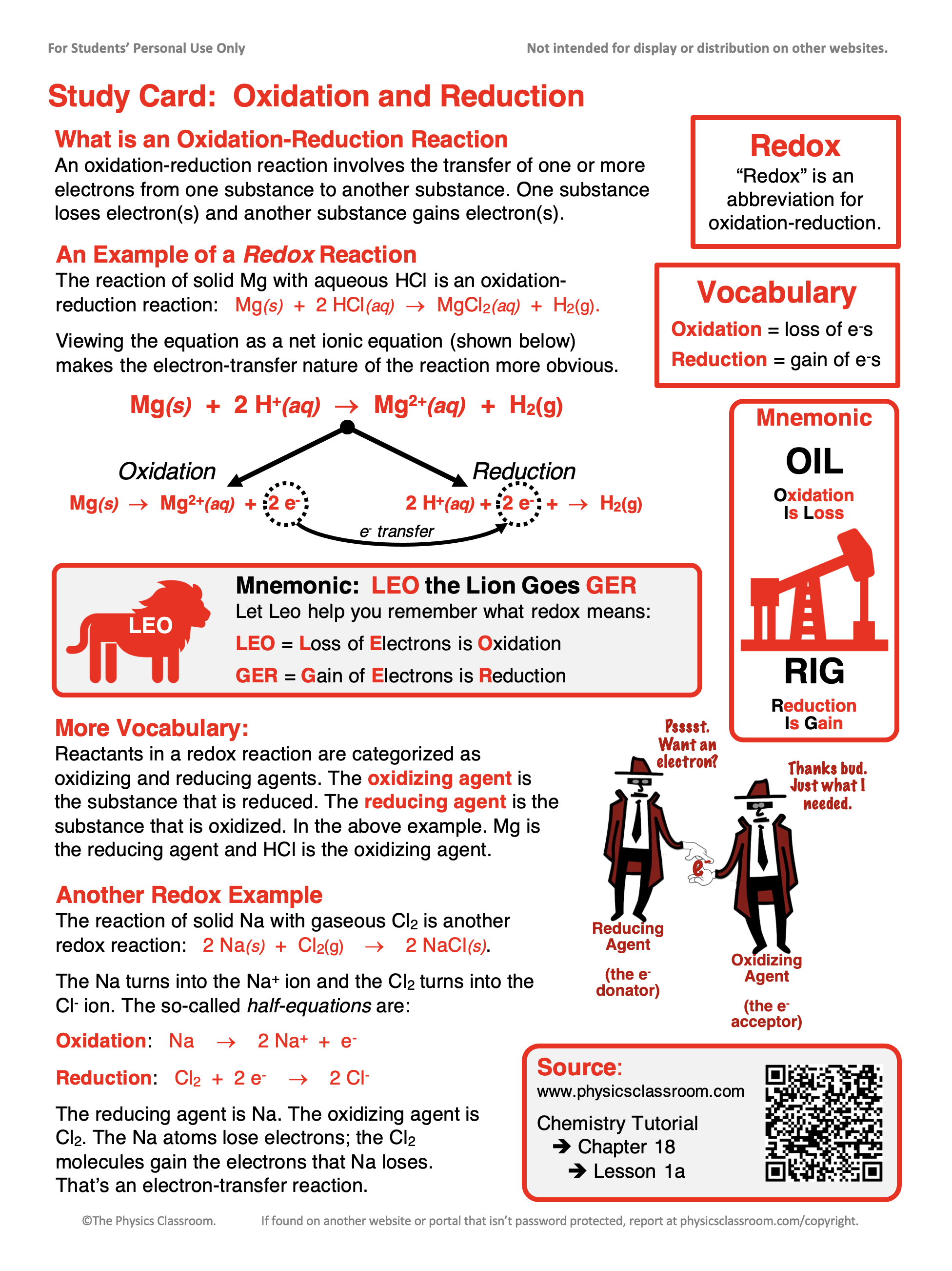 - Download our Study Card on Oxidation and Reduction. Save it to a safe location and use it as a review tool.