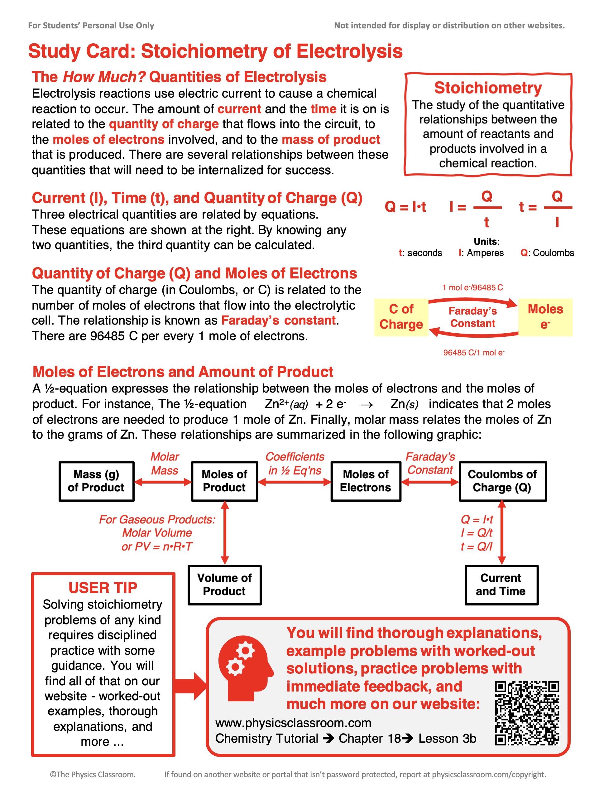 - Download our Study Card on Stoichiometry of Electrolysis. Save it to a safe location and use it as a review tool.