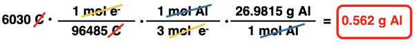 3) using a 1.34-A current for 1.25 hours. Determine the mass of aluminum produced.