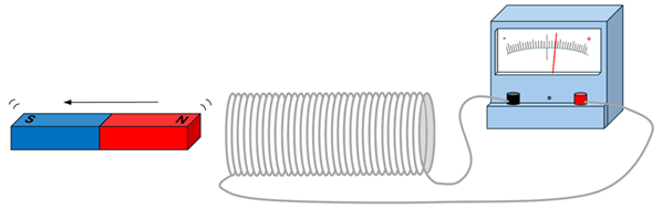 Problem: A solenoid made of 32 loops of wire is connected to a galvanometer as shown. The wire and galvanometer have a total resistance of 0.10 Ω. Each loop of the solenoid encloses an area of 5.0 x 10-3 m2. As a magnet is pulled away from the solenoid, let’s assume the magnetic field through these loops decreases steadily from 620 µT to 80 µT in 0.30 seconds. Find the (a) induced emf and (b) the induced current during this interval.