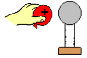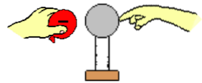 In the charging step, the neutral object (metal sphere) is touched to a third object (sometimes referred to as the ground). There is a transfer of electrons between the third object and the neutral object. Once more, fundamental principle #3 will help you determine the direction in which electrons move. Consider whether electrons in the sphere will be repelled further away from the balloon and into the hand or whether electrons in the hand will be attracted towards the balloon and enter the sphere.
