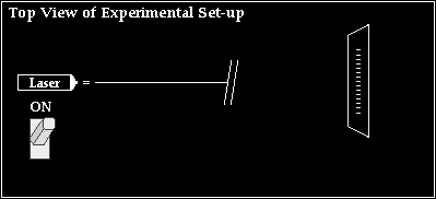 In this activity, you will analyze a two-point source light interference pattern which is projected onto a screen. The interface is divided into two important sections. The top section represents the experimental set-up as it would be seen from above. The set-up consists of a laser beam of unknown wavelength, a double slit, a screen upon which the interference pattern is projected, and an On/Off button.